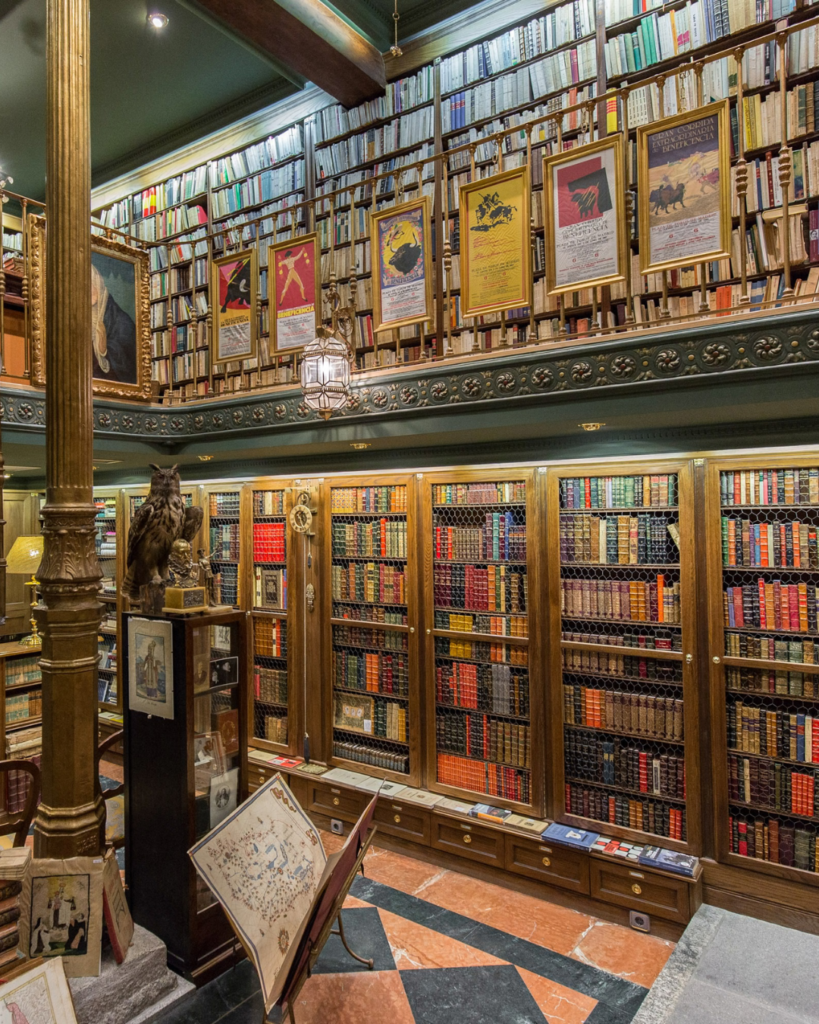 The interior is a work of art, with its winding spiral staircase and walls drenched in prints spanning two floors. The books are mainly in Spanish, but you’ll come across some in English as well.