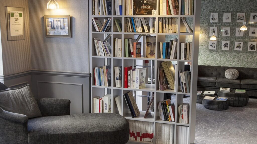 Among other typical amenities like free Wi-Fi, bar, spa, and gym, the hotel has an elegant library with subtle imagery of the famous writer set behind bookshelves and curtains. Even if you’ve never heard of Proust, it’s a place any book lover can enjoy.