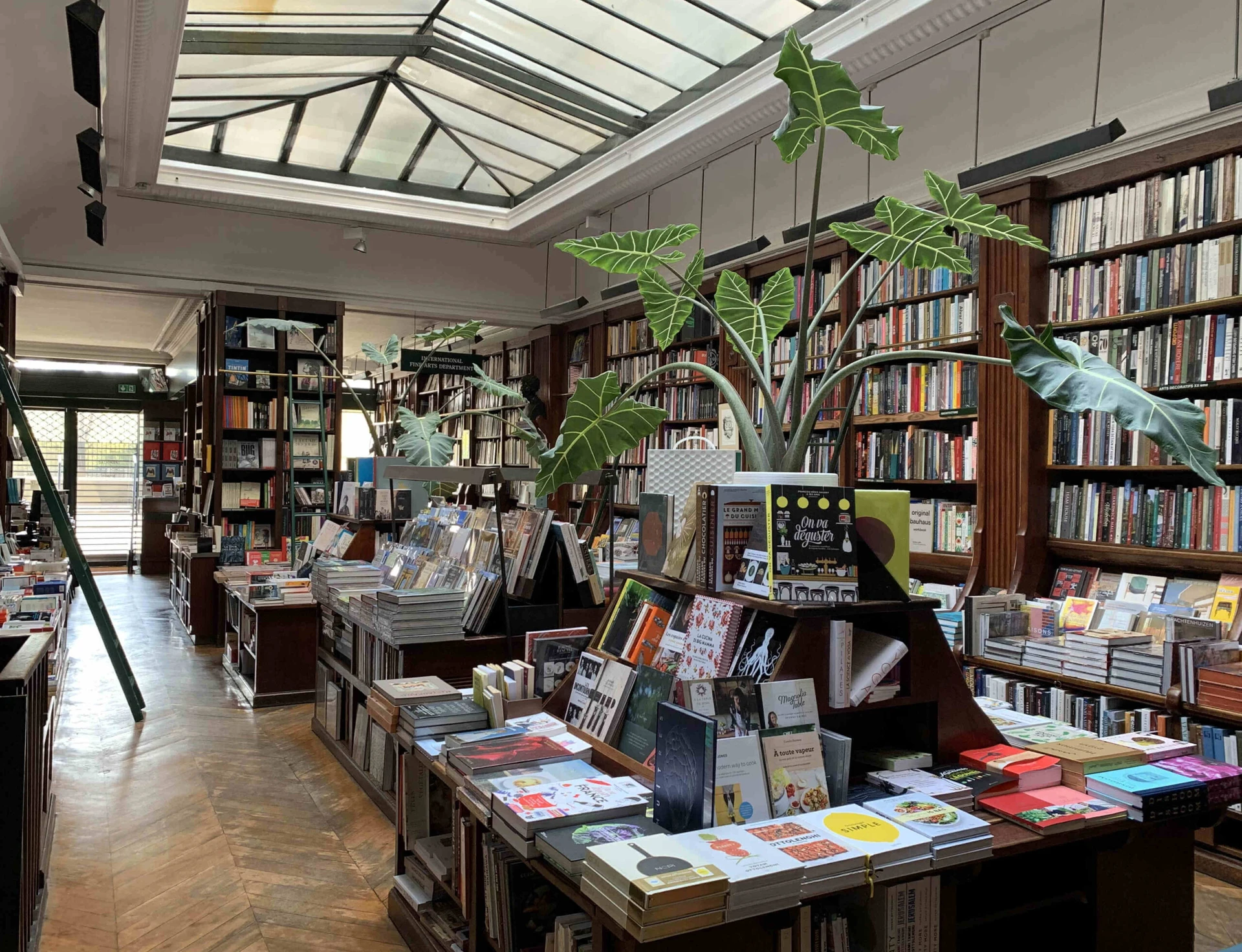 The store offers a vast collection of art books, photography, architecture, fashion, and more, mainly in French, but with a few in other languages like English and German.