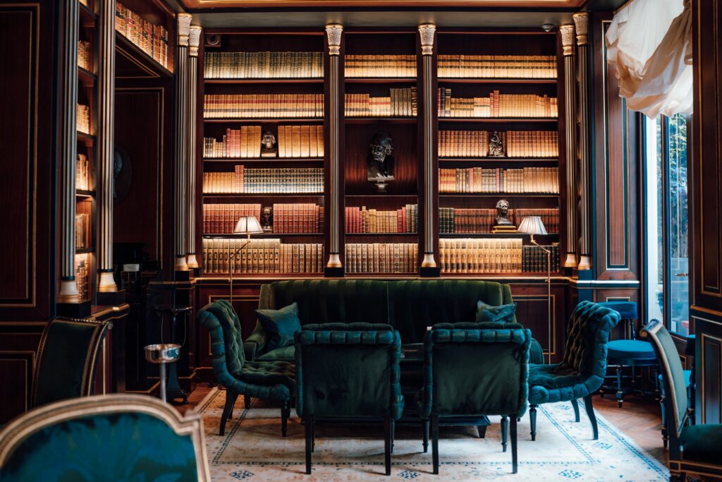 Set in a neoclassical 19th-century mansion with a truly impressive façade, Saint James Paris promises all the grandeur you could hope for from a Parisian hotel. Of special note is its book bar (classically named “The Library Bar”), filled with elegant decor and plush armchairs and sofas.