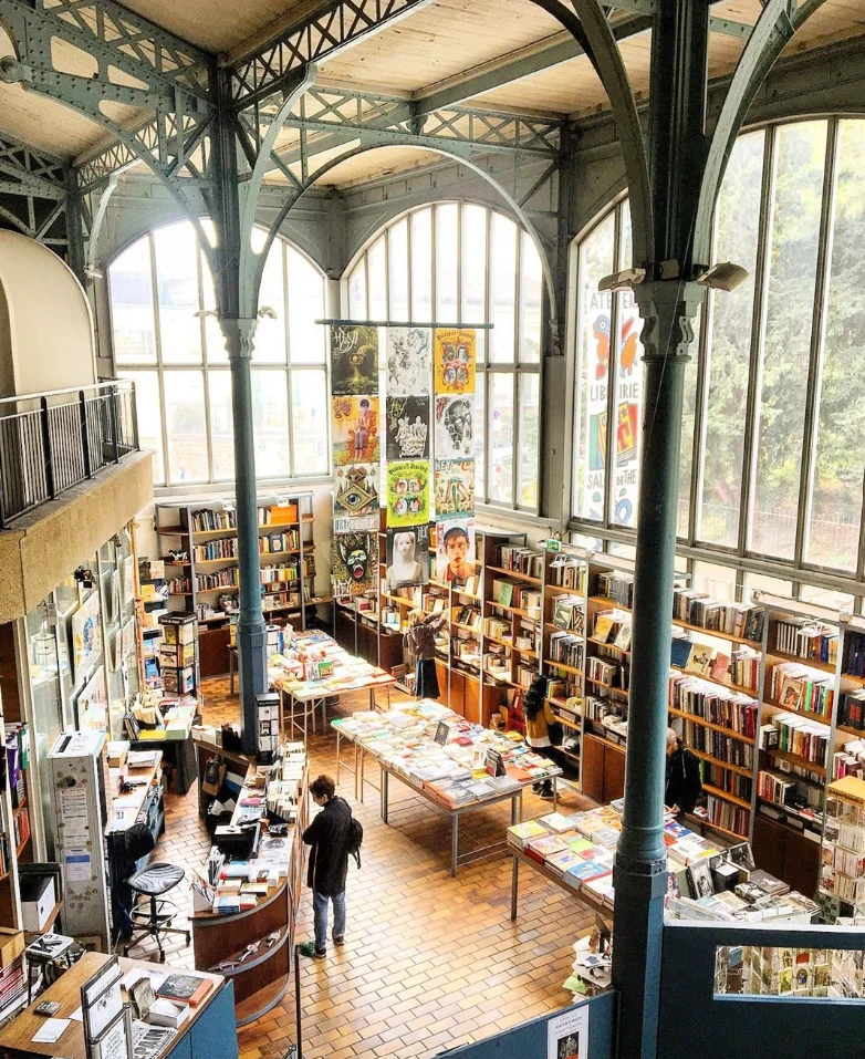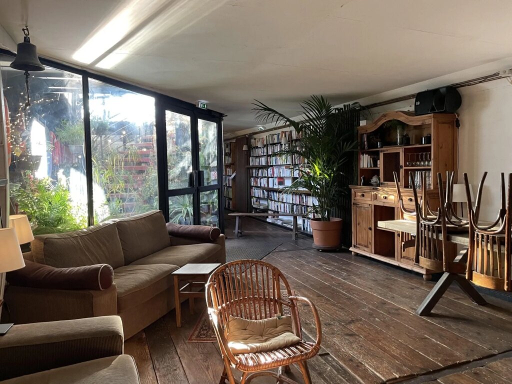 Moored along the Canal de l’Ourcq, Librairie L’Eau et les Rêves is a unique bookstore and café on a boat filled with lush potted plants. It’s quite fitting, too, as its collection (primarily in French) specializes in nature, gardening, and ecology.
