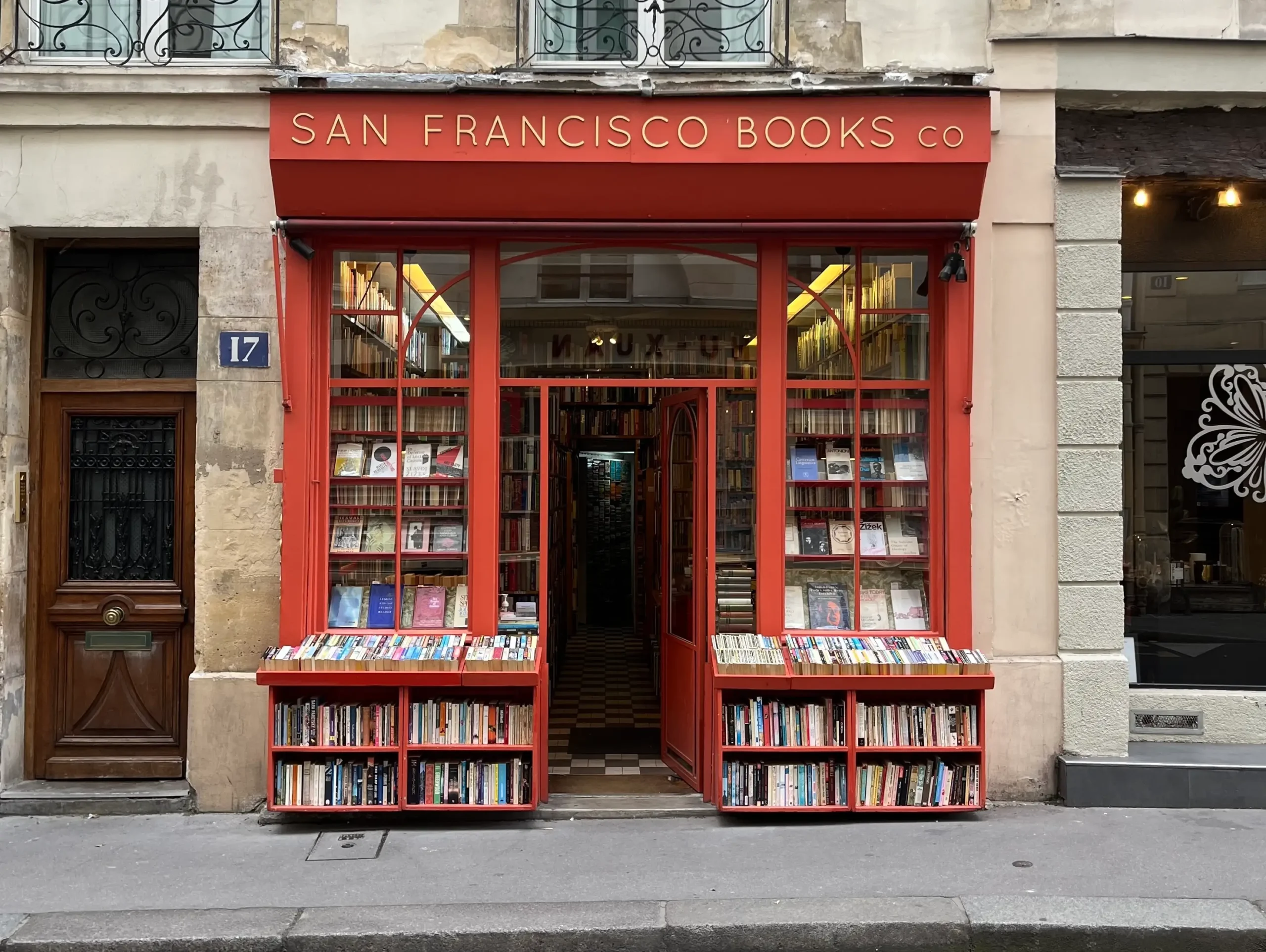 Not too far from the Abbey is San Francisco Book Company, another beloved English-language used bookstore. This one distinguishes itself with its bright red storefront mimicking the color of San Francisco’s famous Golden Gate Bridge—a stand-out in the muted-colored buildings around it.