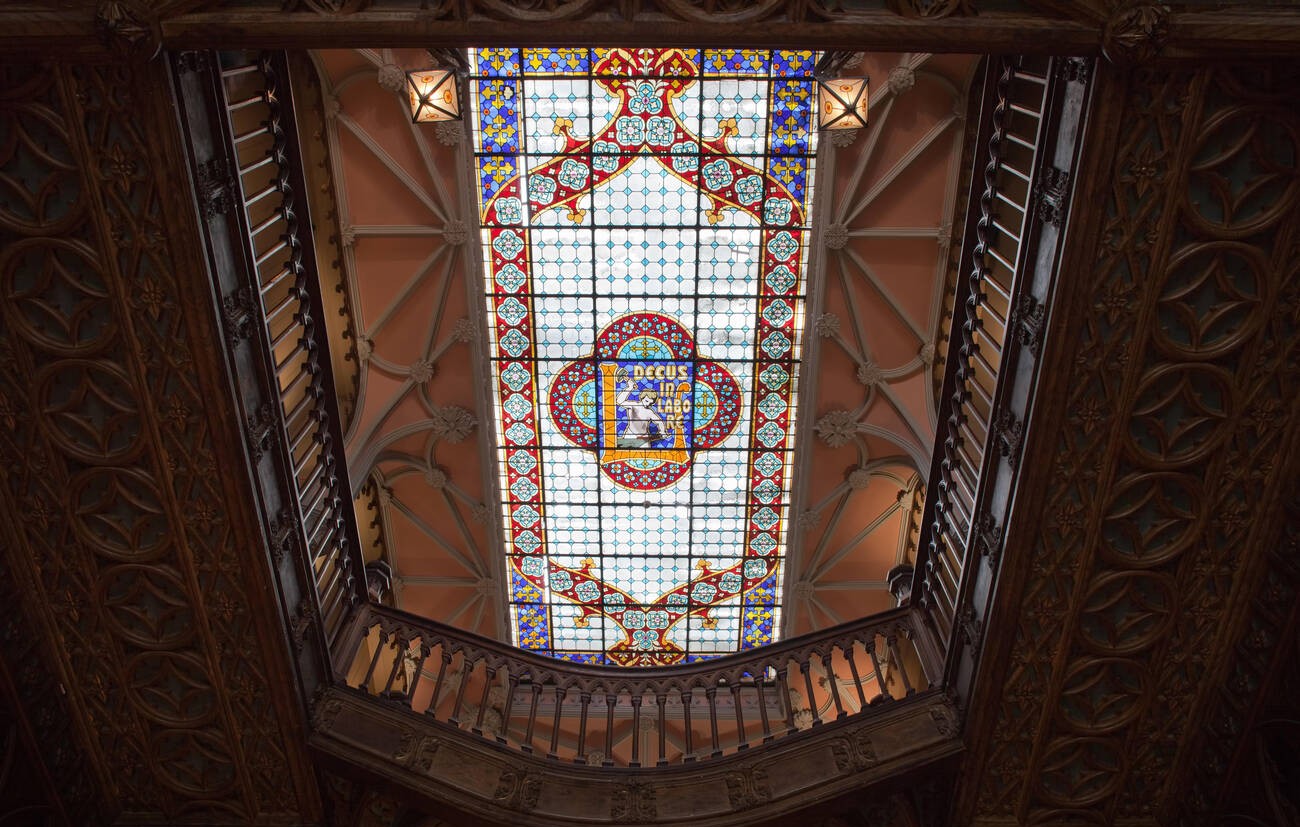 Aside from the unique, curved staircase—rumored to have inspired J.K. Rowling’s depiction of Hogwarts—the bookstore also features a stained glass ceiling with the phrase Decus in labore, or “honor in work.”
