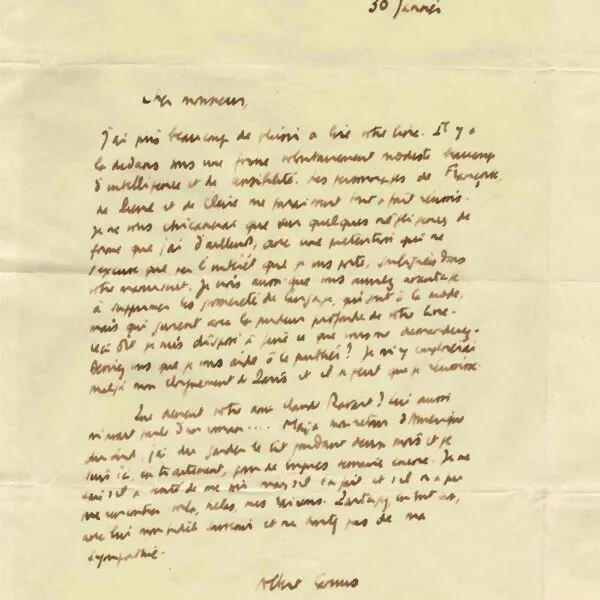 Albert Camus, the French-Algerian philosopher of the absurd. His handwriting? Surprisingly clear, modern, and minimalist compared to the more common sprawling scripts of the 19th century.