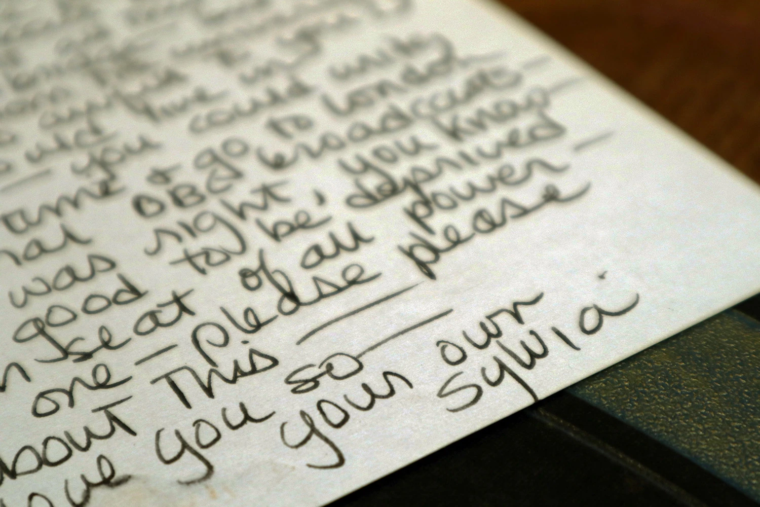 Sylvia Plath’s handwriting tells a very different story. Looking at her journals, her script is quick, loose, and frantic. It has an intensity to it, as though each word couldn’t get out fast enough.