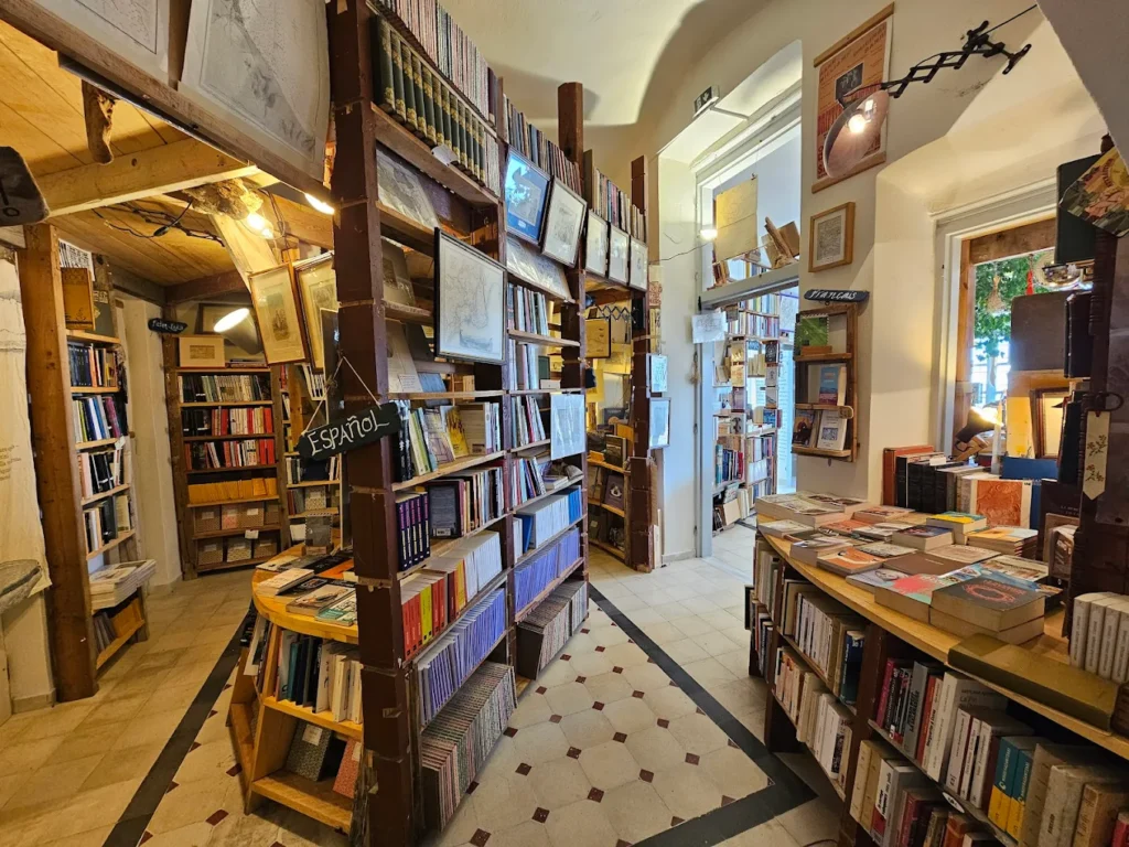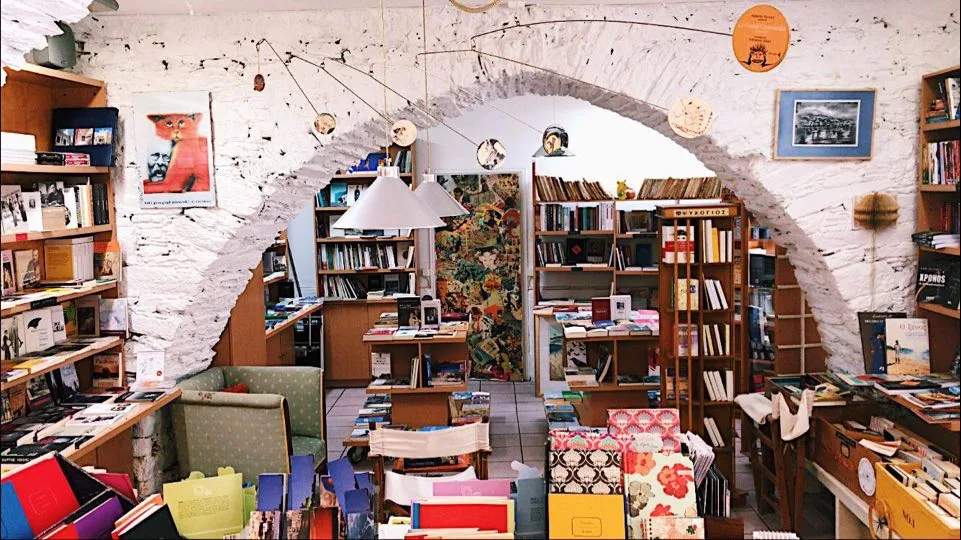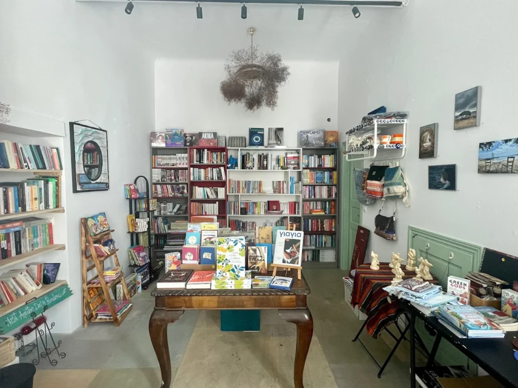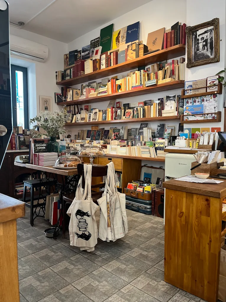 Its book collection holds new, used, and rare volumes in multiple languages, focusing on modern classics, art, poetry, and all things Greek.