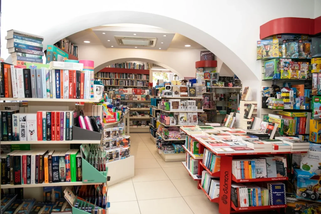 The collection is well-stocked in Greek and foreign languages such as English and German. There’s also a nice array of toys and stationery, and the store is animal-friendly, to boot!