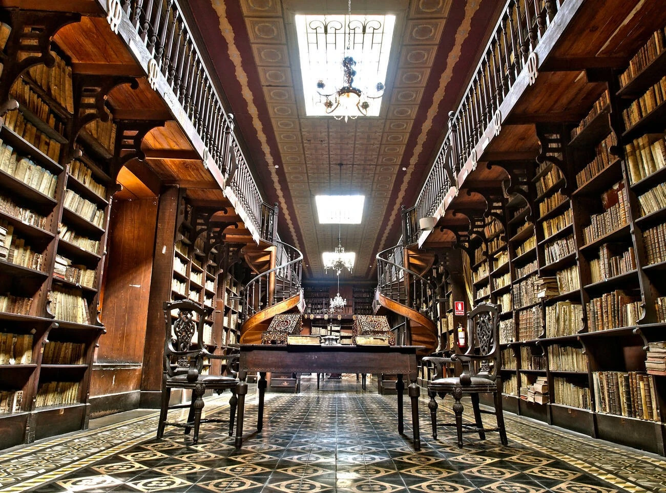 Today, it stays true to its role as a library, with wooden bookshelves filled with ancient texts nestled against the brick walls.