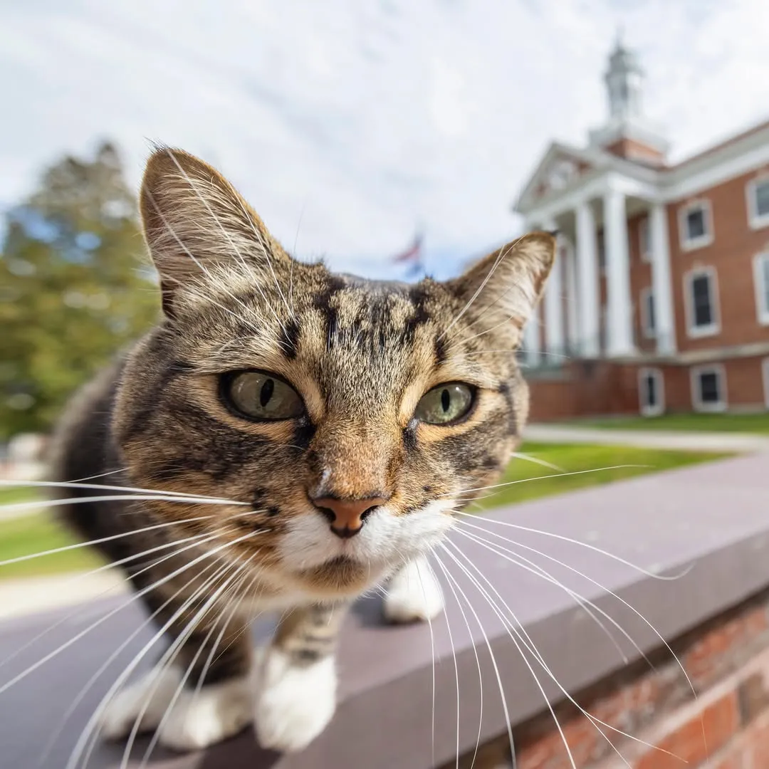 Much like many other great scholars, Max’s life started with humble beginnings. He was living on the streets of a neighboring city in Vermont as a feral kitten before being adopted by his loving family and owner, Ashley Dow. Dow and her family live in a neighborhood shared with Vermont State University Castleton, and about a year after moving into their new home, Max began to explore the campus for the first time.