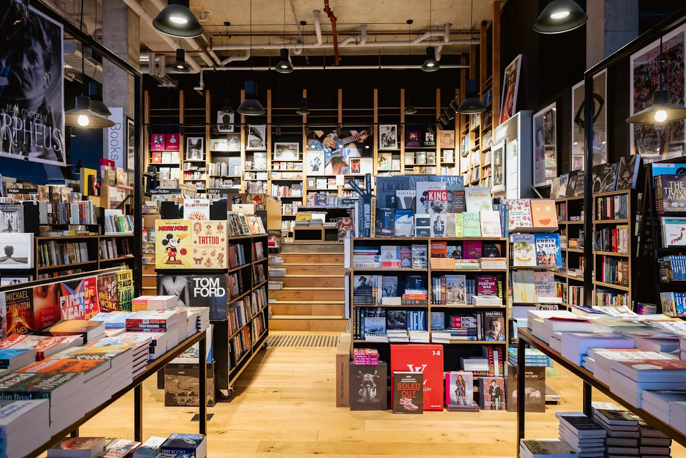 It aims for a high-quality, well-curated collection that draws creative professionals, students, and book lovers seeking rare and hard-to-find works. The open-floor layout creates a striking picture, and the subtle, and not-so-subtle artistic touches truly elevate the interior.