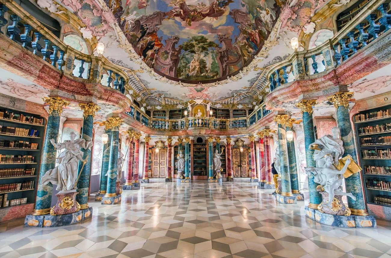 Part of a vast, 18th-century palace-monastery complex, this library has a stunning Rococo design and a book collection spanning the 14th to 19th centuries. The two-level library holds shelves made from mahogany and rosewood, plus ornate ceilings with frescoes.