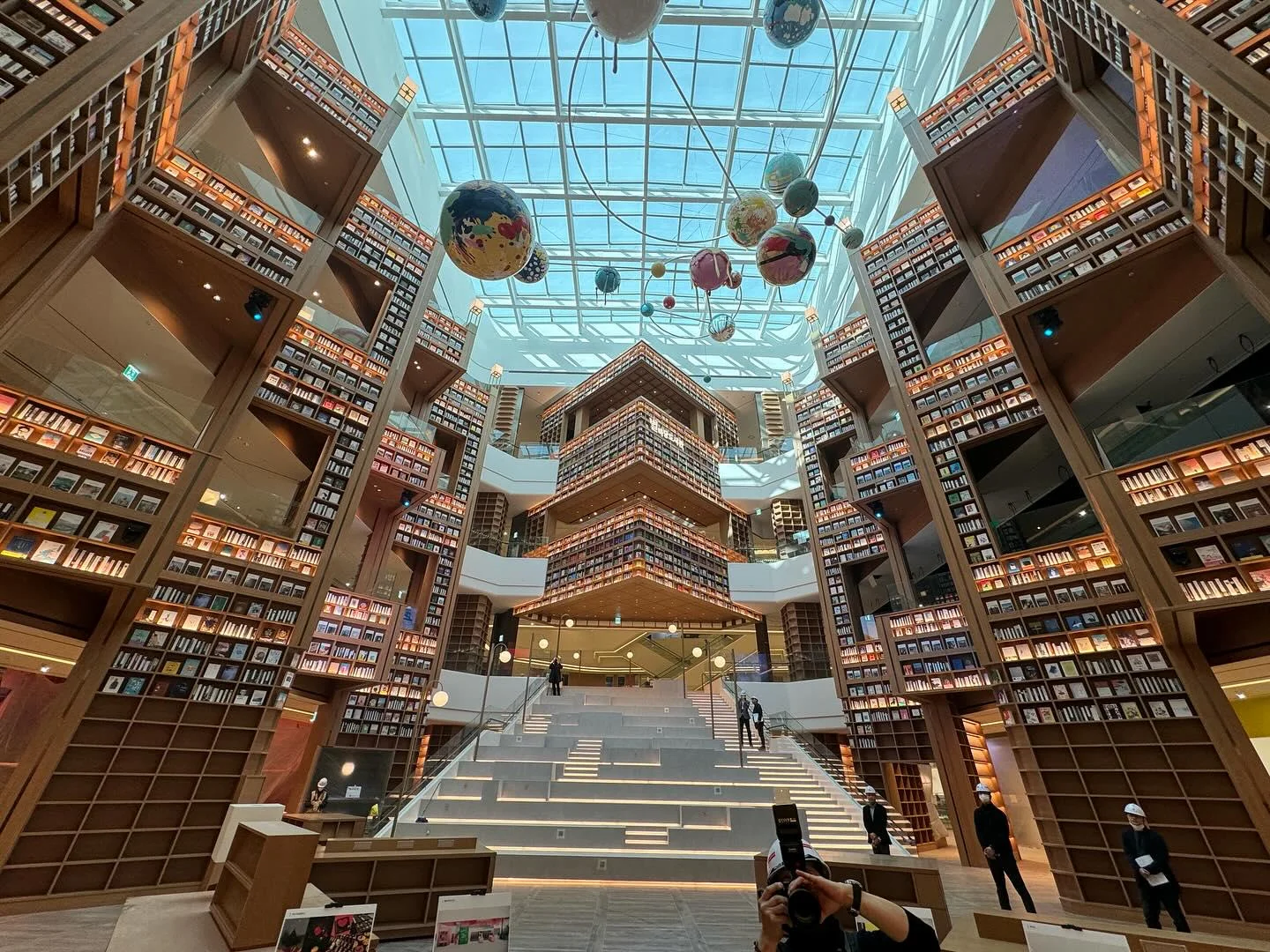 COEX features massive, towering bookcases built like tanks, serving as perfect sentinels for the seasonal art pieces and events that take place in the center of the sprawling floor plan.