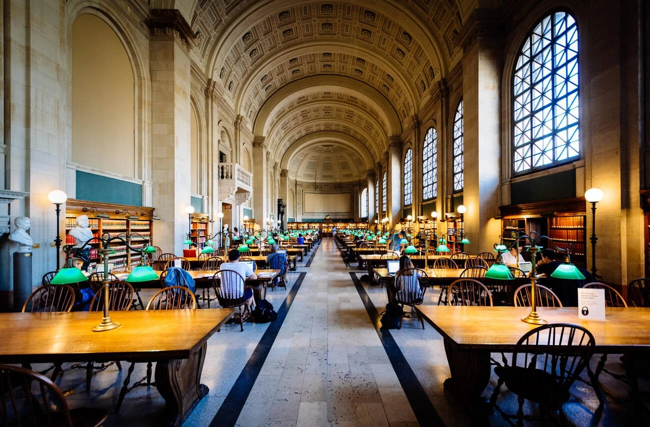 Founded in 1848 as the first large free municipal library in the U.S., the Boston Public Library is located in Copley Square in an iconic building with Renaissance architecture and some very sophisticated research collections.