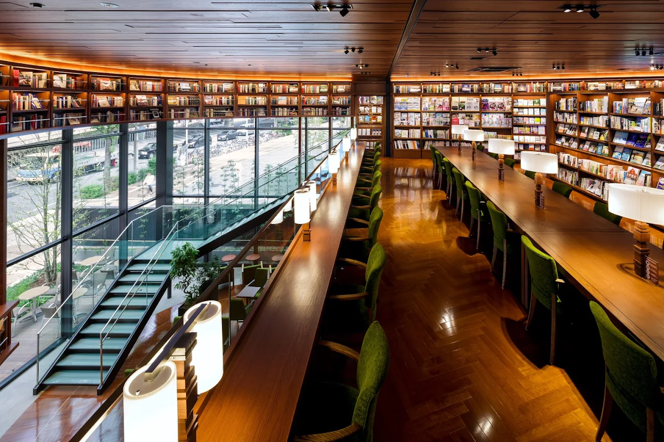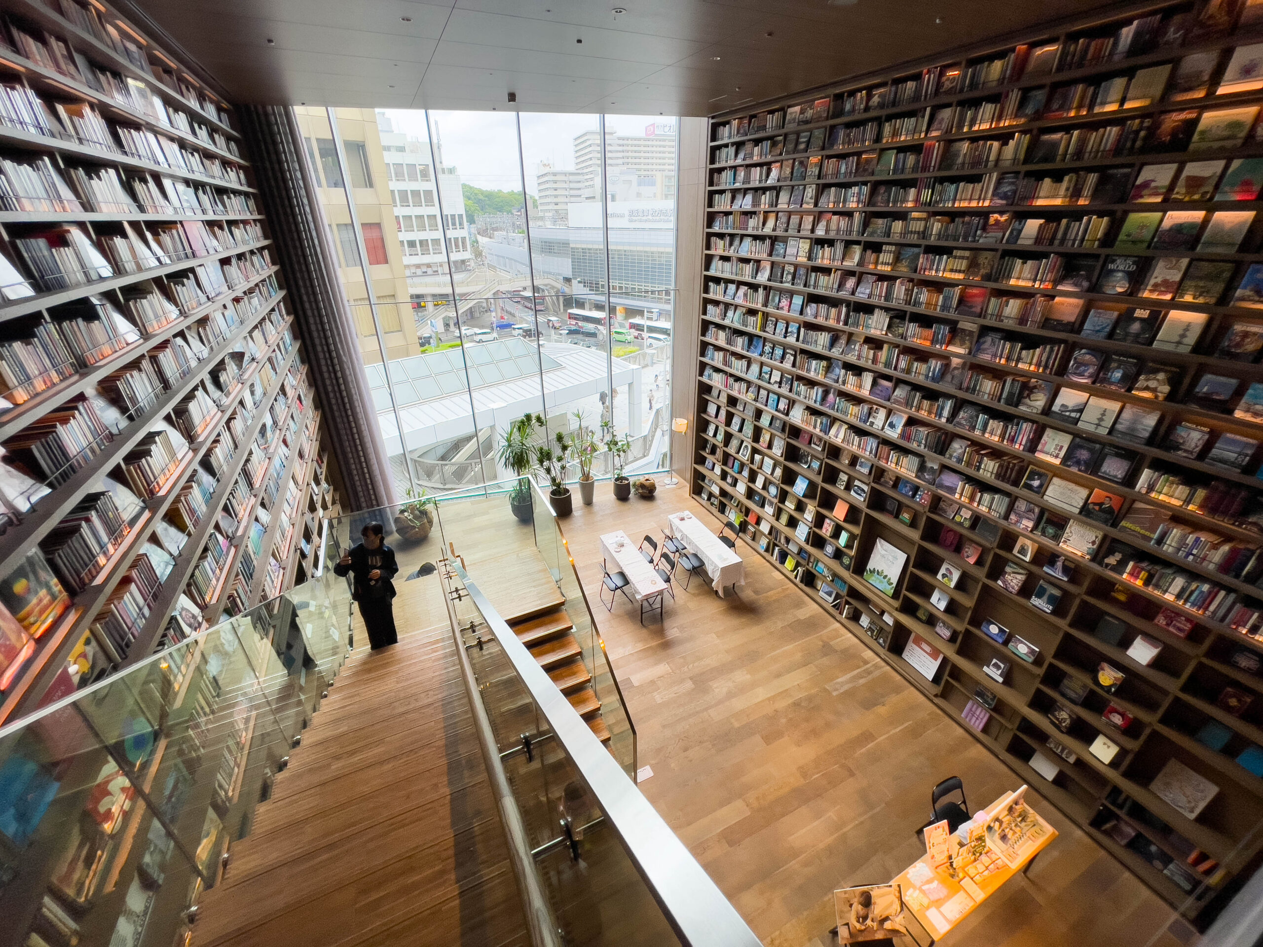 This branch stands out with a semi-circular bookcase jutting out from the ceiling and doubling as the store’s sign, the words TSUTAYA BOOK STORE proudly showing through the building’s glass floor-to-ceiling windows. It has spacious seating and an on-site Starbucks, making it great for both browsing and relaxing with a coffee or snack.