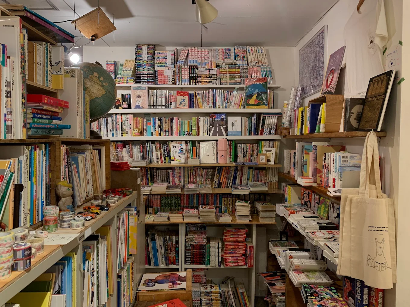 The café is on the first floor and sells Japanese-style curry and tea. The books and other items can be found on the basement floor below. This shop also has an exhibition space for displaying art from time to time.
