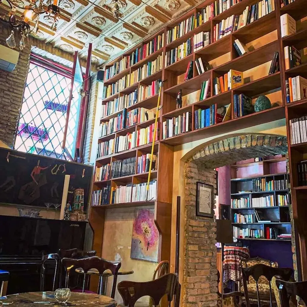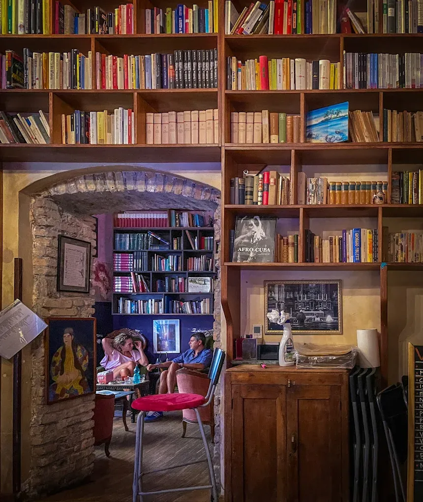 Libreria Caffè Bohémien is a small, boho‑chic book café and wine bar that mixes a cozy reading space with art books and magazines. The interior is filled with comfortable vintage armchairs and shelves that give it a real “literary salon” sort of vibe. Guests are free to browse or buy from the book collection, which is primarily in Italian.