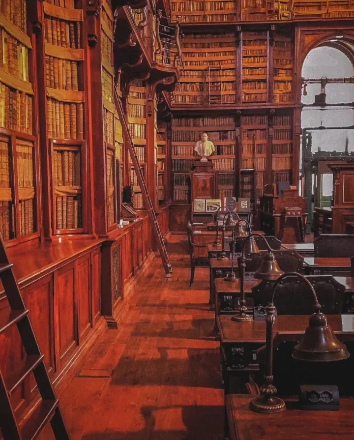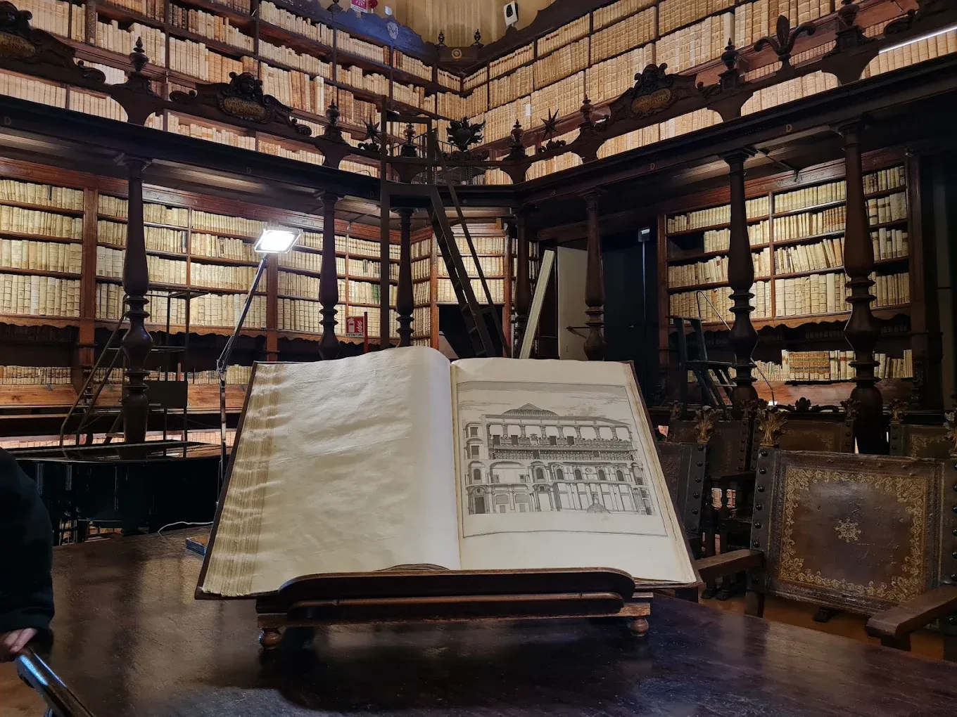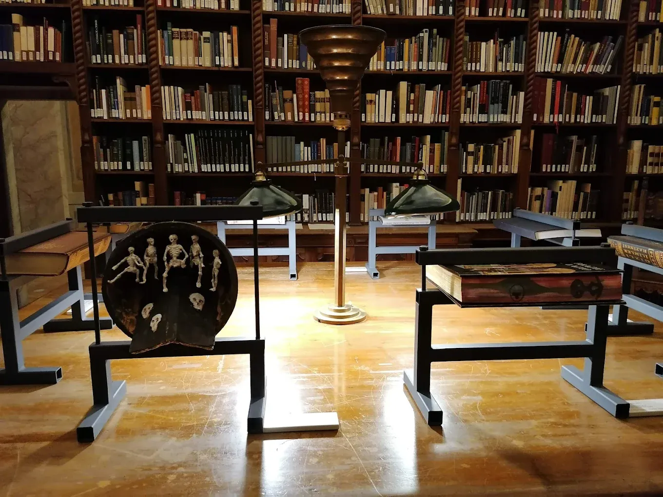 Although it’s not huge, it has a very impressive interior design, with a high arched ceiling and massive wooden bookcases lining the walls. The book collection has grown a lot from its inception, reaching roughly 200,000 volumes.