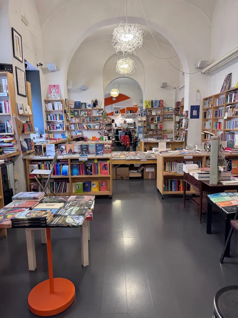 Spazio offers a curated range of fiction, nonfiction, art, and photography titles in Italian, plus a decently sized English‑language section. The café has a relaxed atmosphere, and it’s common for the third floor to host cultural events like author meets and book presentations.