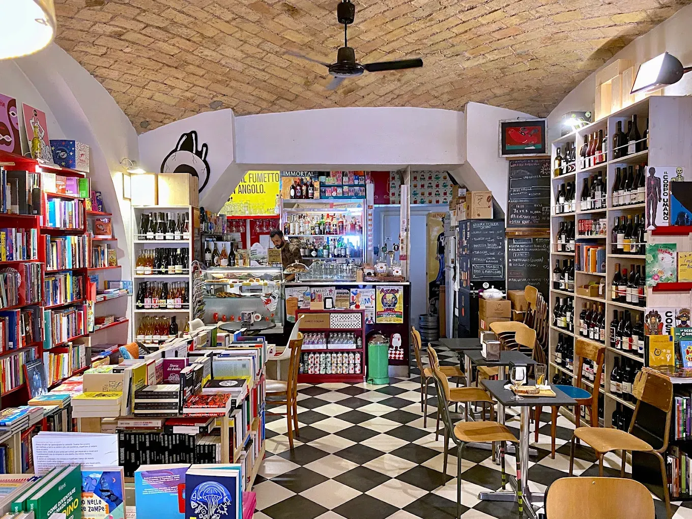 Finally, we have a book café that opened 20 years ago, Giufà Library Coffee. It has a noted focus on graphic novels, comics, and illustrated albums for all ages, as well as a curated selection of contemporary Italian and international fiction.