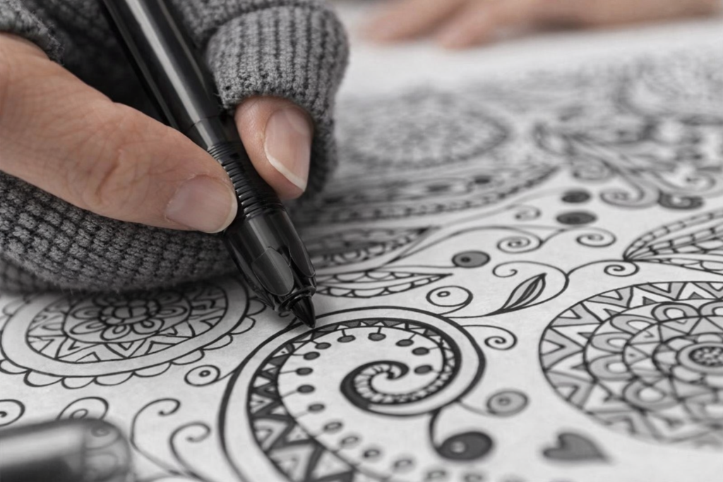 Just black ink on cream paper, settling my mind in a way a screen never can. Even ten minutes of coloring soothes the thoughts that used to race in my mind before sleep. The phone stays in the other room; for once, it is my hands that are busy and my mind that can rest.